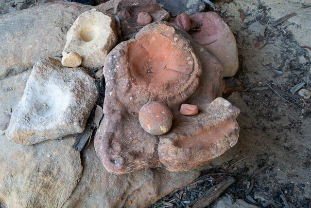 Then we climbed out onto the ridge above. On the way up, we passed through another interesting cave. It contained some Aboriginal artefacts. They looked recent, and may be used by a local aboriginal guide to show visitors.