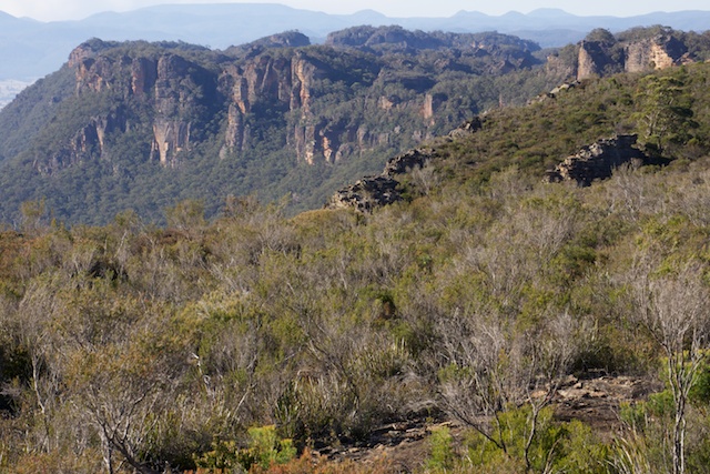 On the second day, we left our camp and set of with daypacks towards Collet Gap. We didn’t make it all the way there because we were often diverted by interesting and enchanting features along the way. The best place to walk is not on the ridge crest but closer to the Capertee Cliffs. These cliffs are quite amazing. In three places the cliffs seem to form a large concave dish shape.