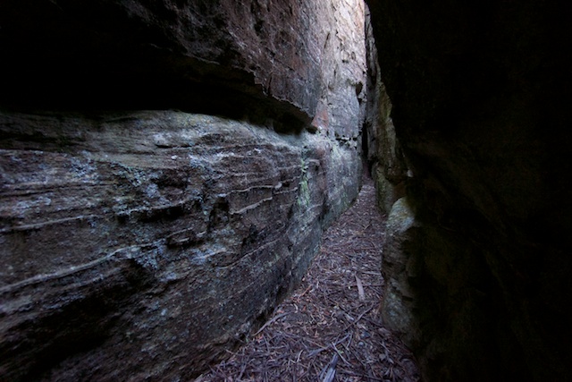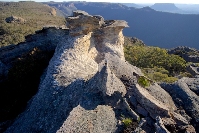 After lunch at our campsite at Point Nicholson, we spent the afternoon soaking up the views and exploring nearby canyons and cracks. Many of the pagodas are rent with crack type fissures that can be walked and scrambled through. Very interesting places to explore. Similar cracks can be found on Donkey Mountain and other places on the Wolgan – Capertee divide.