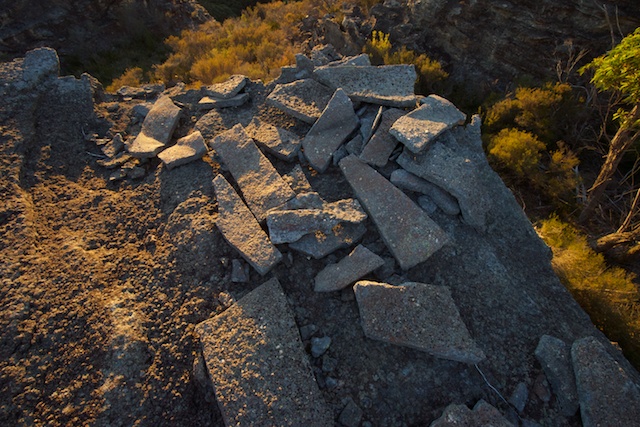 I take broader definitions for these colourful place names. I use the Blue Rocks for the area near or on the Wolgan – Capertee divide west of Hughes Defile and the Red Rocks for east of there to the Pipleline Track. Further east is denoted as the Mount Morgan Plateau.