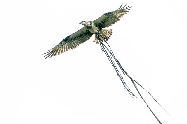 One of them did not seem satisfied with some bark used for the nest. It flew off with it, circled around and landed back on top of the nest with it.
