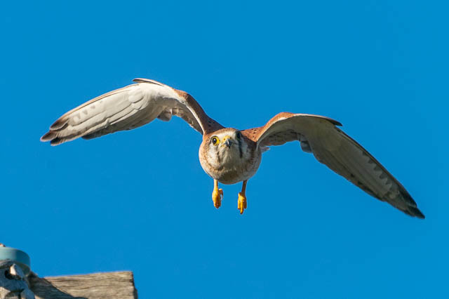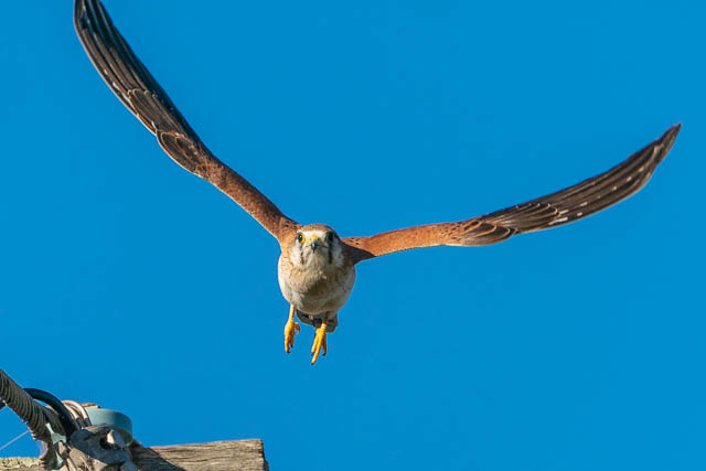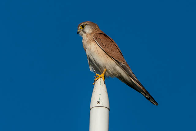 In the sporting field nearby, I saw a Nankeen Kestrel sitting on one of the posts. I walked closer to get some photos.