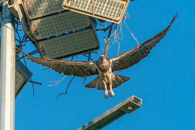I then walked to another nearby sporting field to where a pair of Ospreys have their nest. I managed to get some nice photos of one of the Ospreys. I think the second one is sitting on eggs in the nest.
