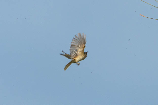 Some of the Brown Honeyeaters were flying around rapidly after insects –
