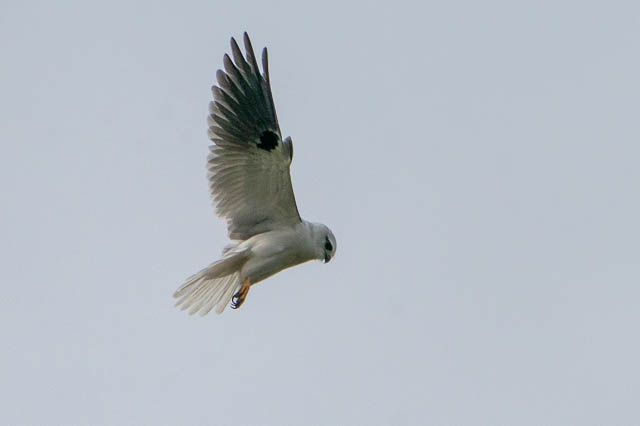 I also looked up to the higher level, and I did see a hovering Black-shouldered Kite. So I headed up and managed to get some photos of it before it flew away.