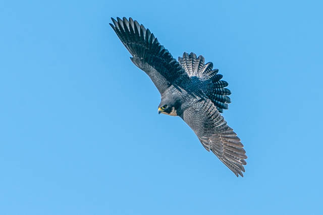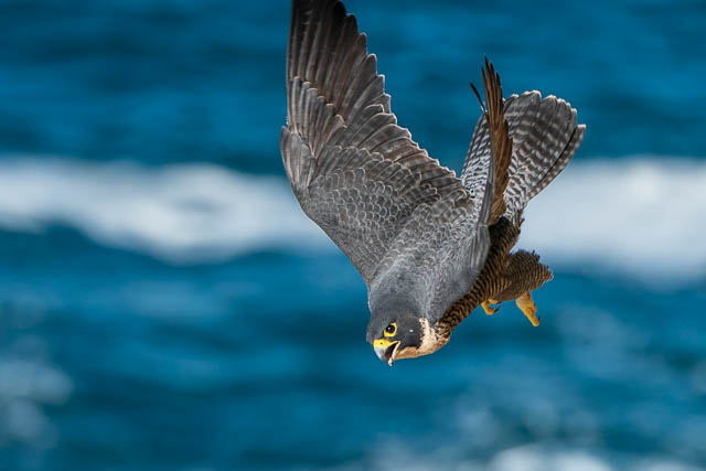 Having missed the action, I left the park and made my way to the next location – the sea cliffs. Here, I soon located a nesting Peregrine Falcon. I think it was the female at the nest. I waited hoping the male would return, perhaps with some food. While I was waiting, the female did take off and fly around, then land, and take off again. This provided some nice photographic opportunities, but I thought I was unduly disturbing the nesting bird, so I left the area.