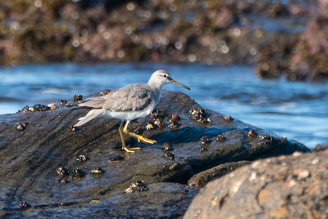 There were also a fair number of smaller birds. Its hard to get close to them without spooking them, and then they fly away. Its best to walk fairly close very slowly, and then wait hoping the birds will get closer to you in their foraging. I think they were Grey-tailed Tattlers and Ruddy Turnstones.