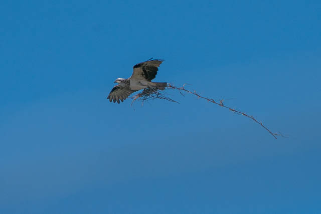 I then waled around to the Osprey nest. On the way, I spotted one of the Ospreys returning to the nest with some sticks. They must be doing some nest rebuilding.