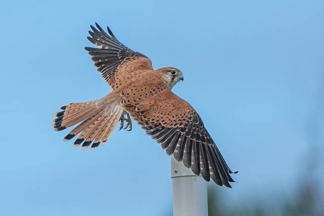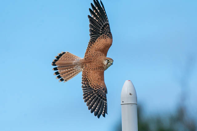 Close to Narrabeen Lagoon, I spotted a Nankeen Kestrel perched on a post. This is a place I have seen these birds before. Its place where they hunt for food. I stayed around and managed to get some nice sequences of it flying.