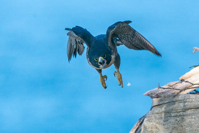 The Peregrine Falcon then went back to its ledge and seemed to be content to stay there.