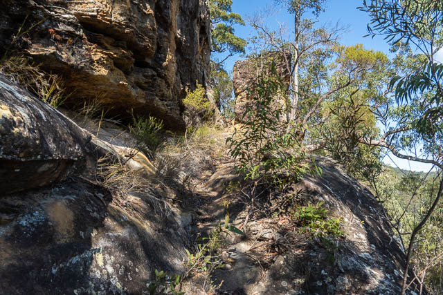 Further upstream, the Ironbark Trail crosses the creek, and that was where we planned to leave the creek. However , the trail at the crossing point is very indistinct and not obvious at all. And we missed it! We had however spotted overhead power lines, so we realised, when we checked the map, that we must have gone past it. We climbed out and soon reached the fire road.