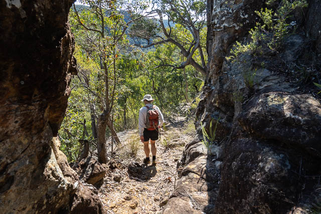 We followed the old road to a bit upstream of Red Belly Black Gully, but the walking above that was not too hard. In places we walked on the boulders near the creek, in other places on rock slabs, and also on the fairly open sides.