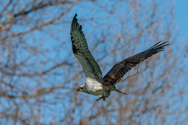 Then one of the Ospreys took off and flew back with a small stick.