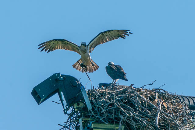 The Ospreys flew back to their nest, and then some more stick collecting took place.