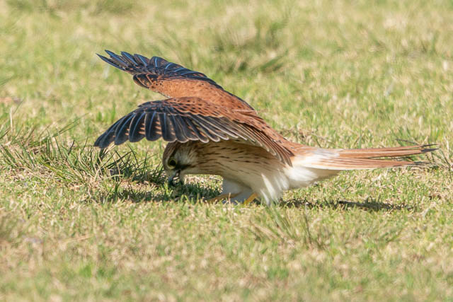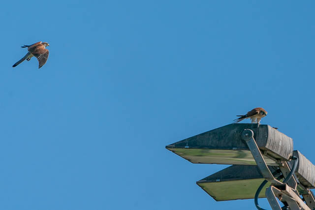 And there was a Nankeen Kestrel. It seem to be driving off another bird. When they both flew closer, I saw there were two Kestrels, and one was encouraging the other to leave. Perhaps a territory dispute?
