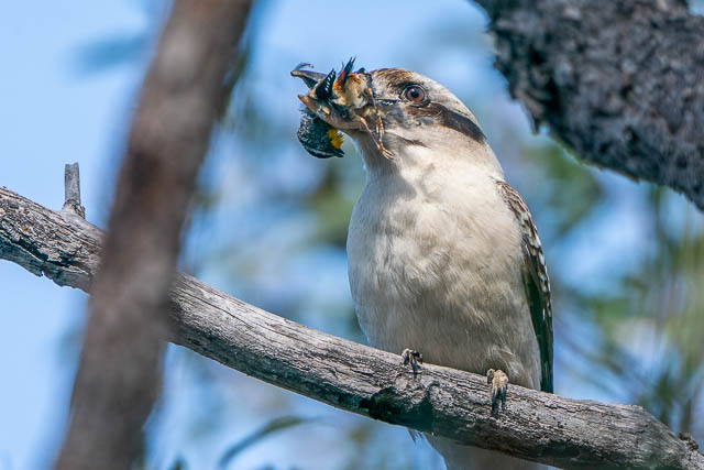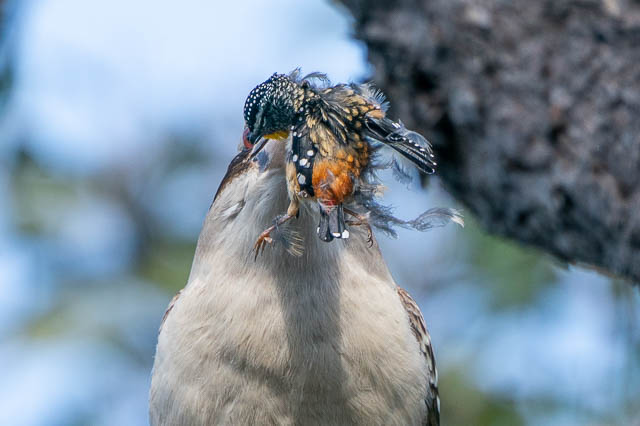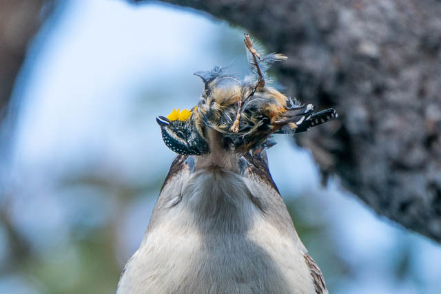 I lated checked online, and I did find that “small birds” are part of the Kookaburra’s diet. I later photographed a Spotted Pardalote that wasn’t prey –