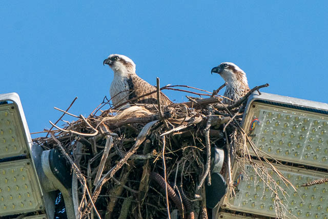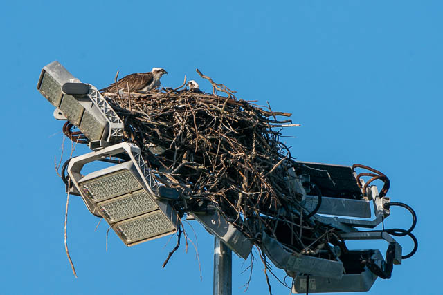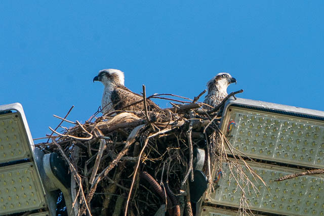 I still watched the Ospreys to see if they would do any more flying. One of the Ospreys did move to one of the lights –