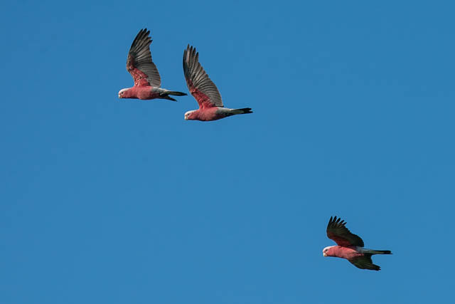 I looked around to see if any other birds were around. No Kestrels this time. I did spot some Galahs flying past –