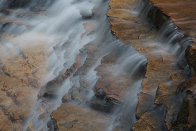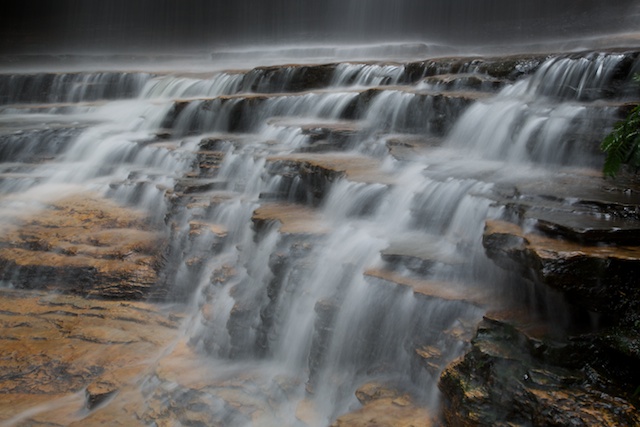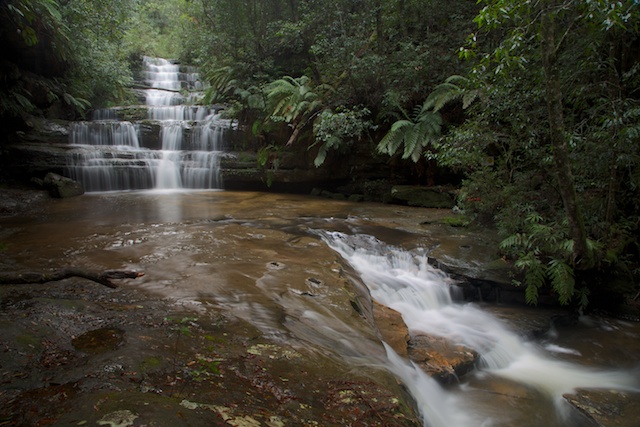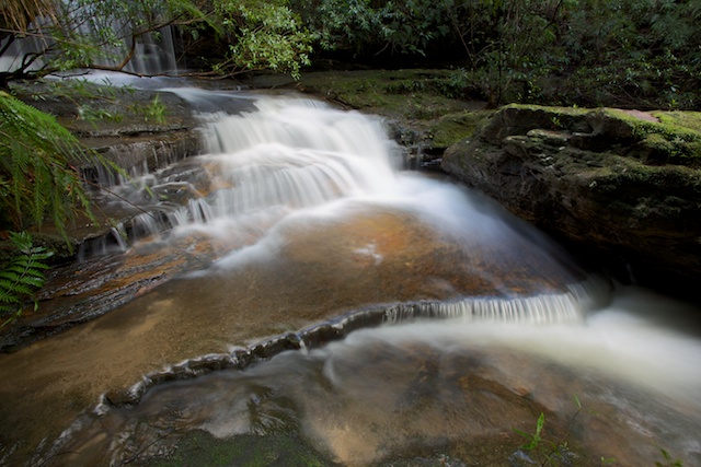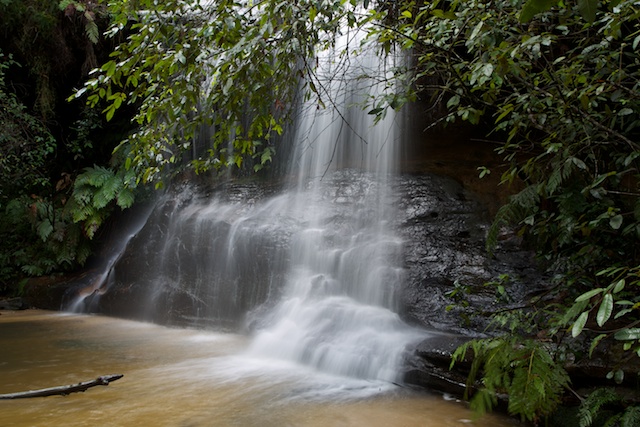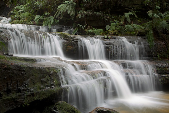 After a visit to the Lawson Cake Shop, I headed down Honour Avenue to the track to Adelina Falls. The falls are only a few minutes from the road. There was plenty of water going over the falls and it was time to pull out the camera. Winter is a bit of a gloomy time – and the light was a bit restricted.
