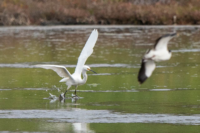 In the Landing Lights Wetland there were the usual Pied Stilts and various ducks. There was also a White-faced Heron and a Little Egret. The Egret was quite busy hunting for small fish.