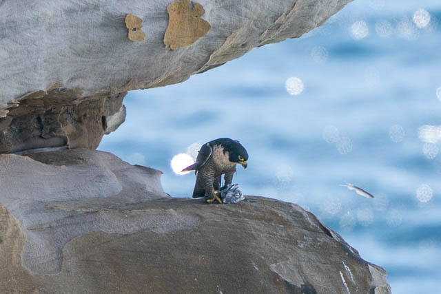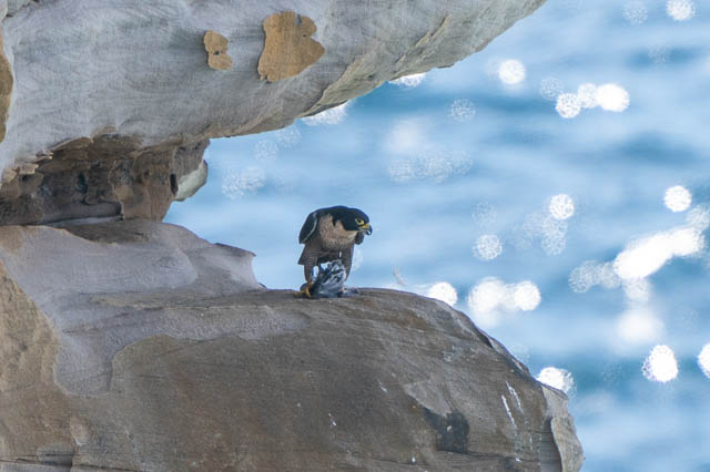 One more pleasant day spent out on Malabar Headland. Again, my aim was to photograph the Peregrine Falcons. This visit they were reasonable active and during my time there, one brought back two dead birds – presumably to feed young chicks. That is good news.