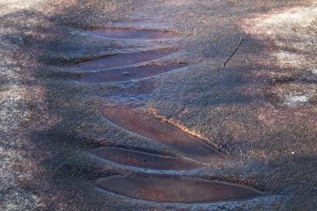 These carvings are very close to Uloola Falls. Walk along the track to Audley for a few minutes and look for a faint turn-off leading to a rock outcrop.