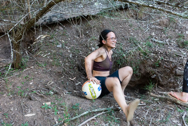 At one time the ball disappeared down a wombat hole. Luckily, Julia could squeeze down and retrieve it.