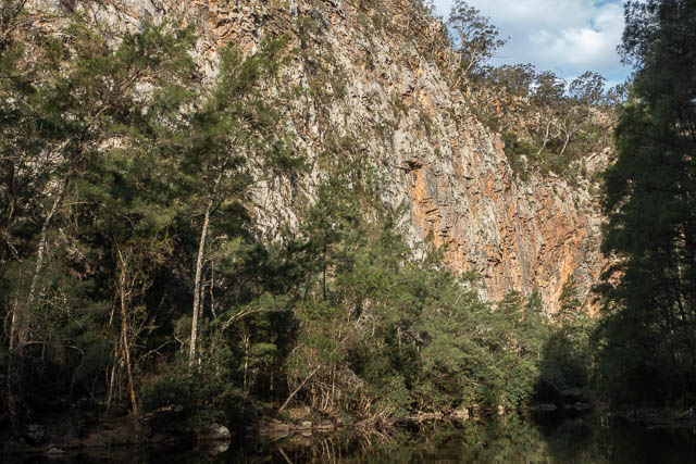 The last section from Roots Ridge to Orange Bluff is one of the nicest on the whole Kowmung. Grassy flats, but also small and large bluffs overlooking crystal clear pools. Between the pools are sparkling rapids.