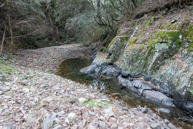 The rest of Gingra Creek is very nice walking, all the way to the Kowmung. It is an incredibly beautiful creek, but had suffered a lot in the recent drought. In many places the creek was not flowing (on the surface – there would be underground flow) and the pools were quite low. The non flowing sections of the creek were quite slippery due to the rain – so care was constantly needed.