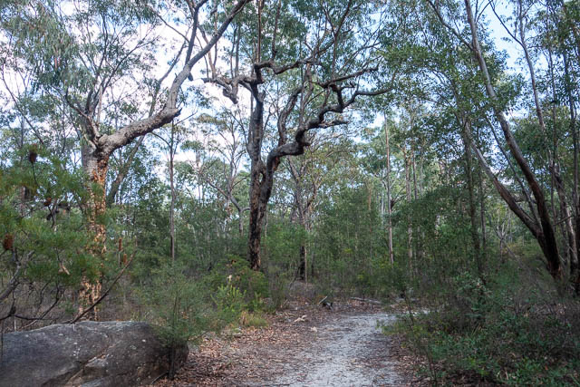 Recently went for the part of the walk along Booker Road and then followed the fire track to the end but we couldn’t find the track leading down to Shaws Creek. At the end of the track we were standing on high rocks overlooking the valley and could see out to the Nepean River lakes beyond. Could you describe where the track down to the creek is in relation to these rocks so we can walk down to the creek as you have done.