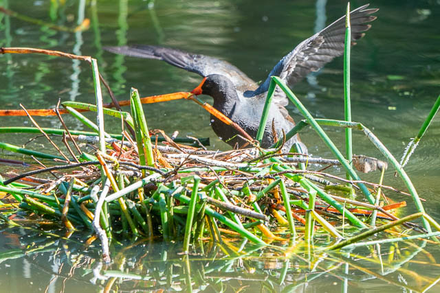 And further along there was a Dusky Moorhen building a nest.