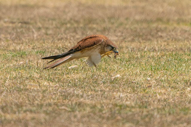I had lunch, and then walked to Rat Park to check out the Ospreys. I could not spot any, either flying nor on the nest. I am beginning to think this pair may have given up breeding for the season. I did spot a Nankeen Kestrel – and was able to get a series of photos of it hunting for food –