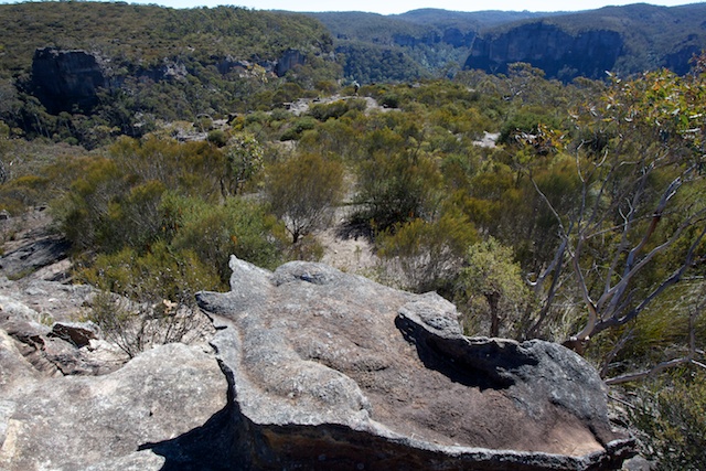 Back to camp for breakfast, then I headed out with John, Chuin Nee, Jasper and Keith for the fire trail that heads out towards Valhalla Head. this can be reached by walking back up the Asgard Swamp trail for a few minutes then heading a short way through the bush. We walked to the end of the trail, and then followed a track out to the cliffs that overlook Ikara Head.