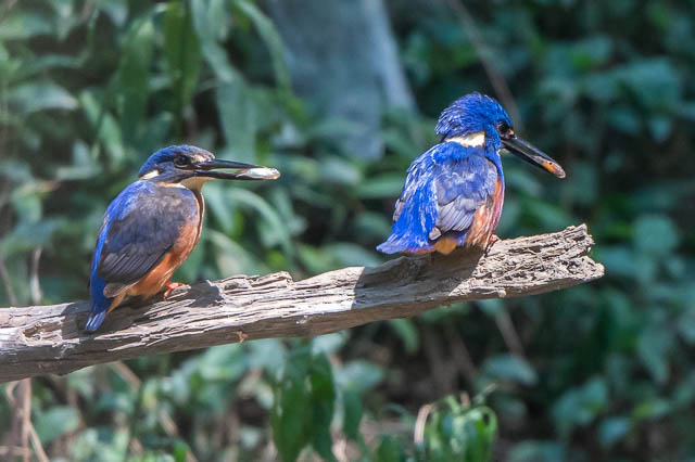 Back at the creek, I was fortunate. The Azure Kingfishers were now around and fetching fish for their young.