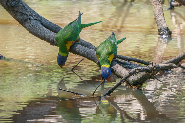 Some more lorikeets. This time some Musk Lorikeets with the Rainbow Lorikeets. They were having a drink.