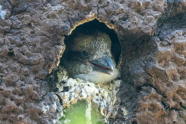 I then went into Irrawong Reserve. Again – fairly quiet. The highlight was observing Laughing Kookaburra chicks looking out their nest – a termite nest.