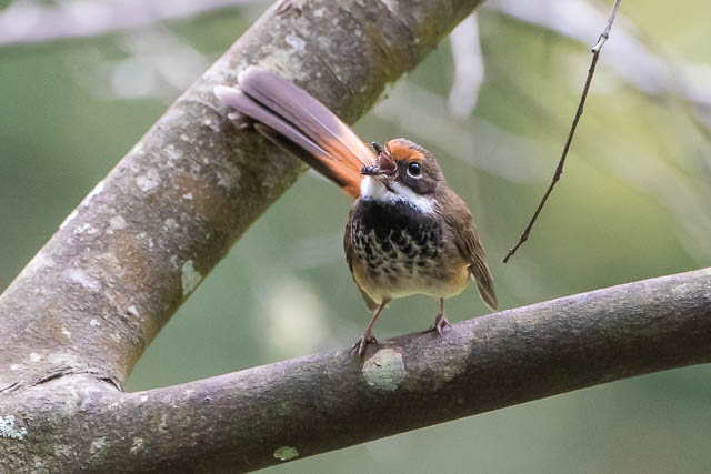 When I found them I took photos, then returned to where I had been before. I was trying to photograph some Scarlet Honeyeaters, but they were either too far away or moving too fast. On my previous trip, I had got some reasonable photos of them at the same spot, this time I was after better photos. No luck however. But I did have better luck with a Rufous Fantail at the same spot.