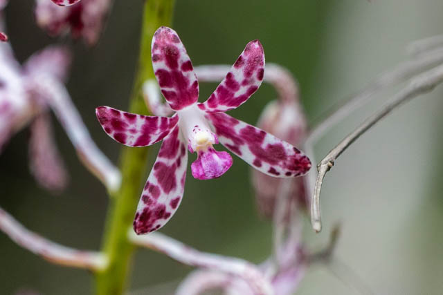I walked from Eastwood Station to the small park at the top of Terrys Creek then set off down the track. I looked up in the trees for Powerful Owls and also on the ground for their “whitewash” – a clear sign that they may be perched above. I didn’t spot at, but did see some other nice birds and plenty of orchids.