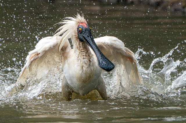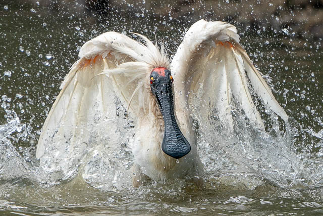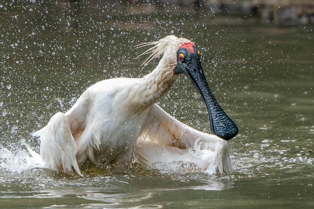 On the other side a Royal Spoonbill was having a bath –