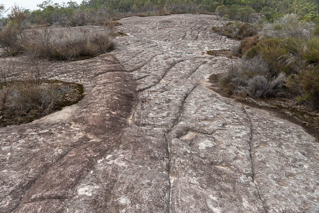 We then climbed up on the far side and soon reached another fire road. We followed this one towards Patonga before turning off and following a track over Mt Wondabyne. On the way we crossed more open rocky areas. On one of these we did spot quite a few Aboriginal sharpening grooves.