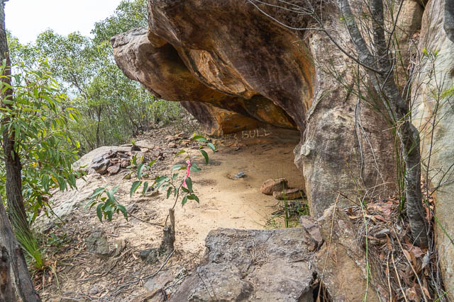 The track then climbs and crosses a high shoulder of Mt Wondabyne. It was a short detour to the summit. On the way we passed a small camp cave.