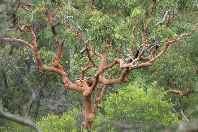We climbed over some low hills and then joined a fire road near the Gosford Rifle Range. We walked a short way along it and then turned off along a track to Kariong Falls. I had walked this way previously, and knew it was an interesting track. Lots of trees growing in weird shapes.
