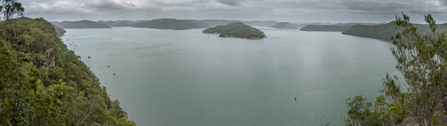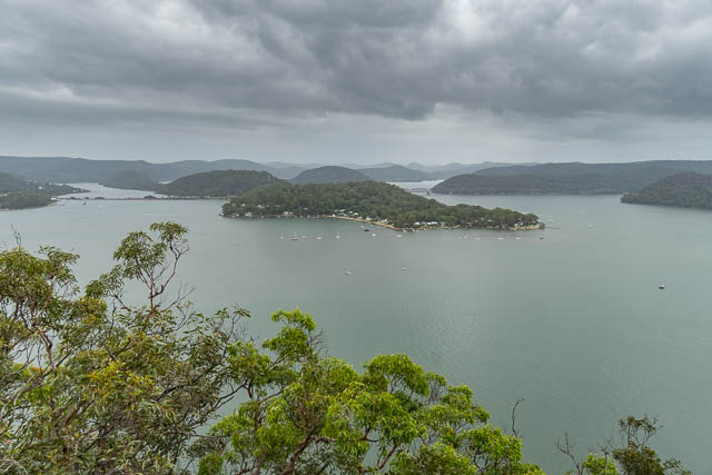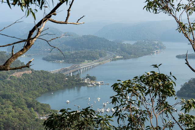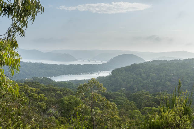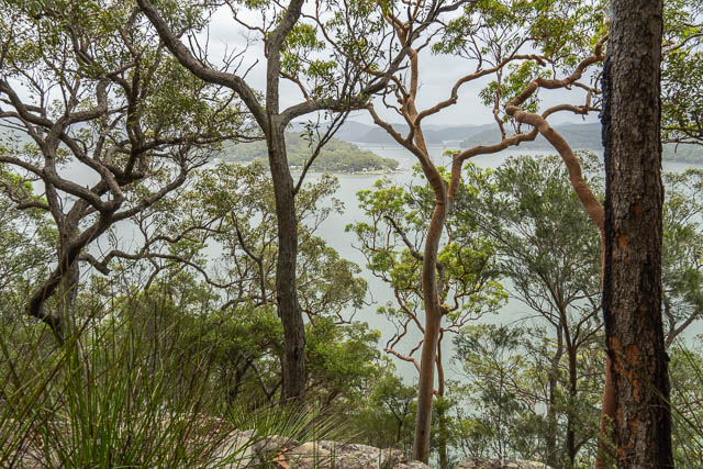 And then it goes down towards Mooney Mooney Creek – but mots of the time it is quite high up. A few lookouts offer “filtered views”. This is pleasant walking on a good track.