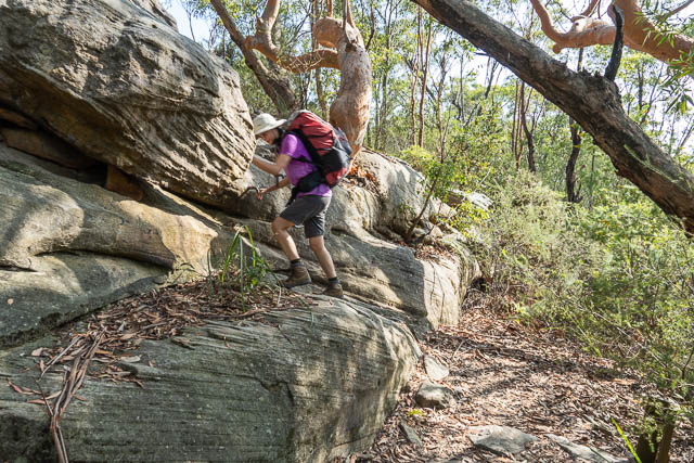We soon reached the Great North Walk track. We followed it south over an interesting rocky area.