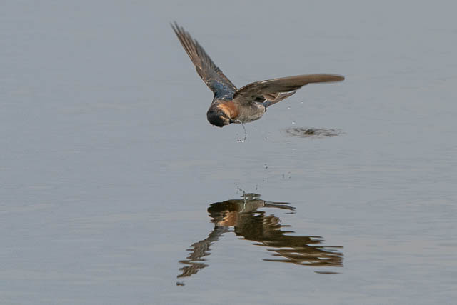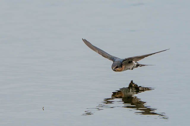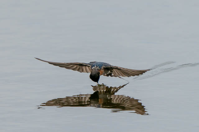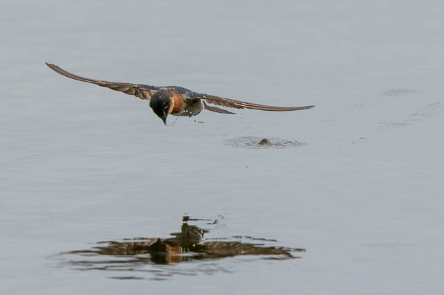 In this sequence, the Welcome Swallow spots an insect on the surface of the water, it swoops down and grabsit.