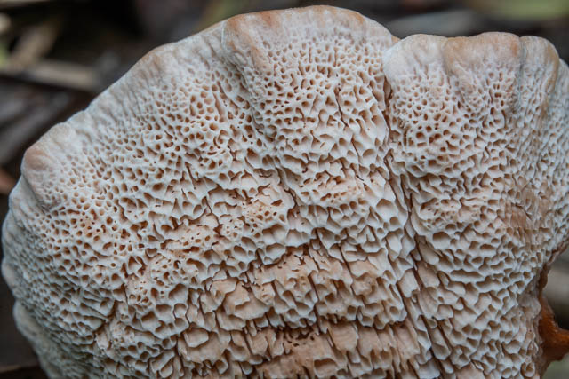 I found a strange polypore growing around and between the base of small tree. Here are some photos –