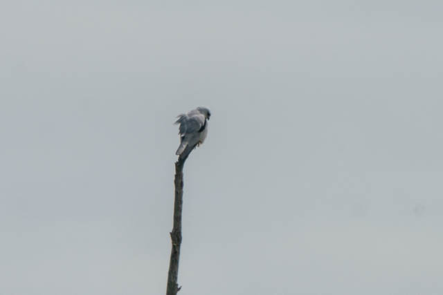 On a very distant tree, a Black Shouldered Kite was perched –