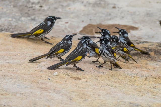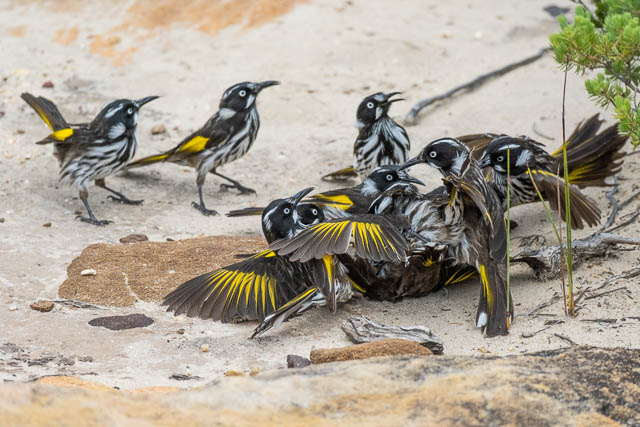 Early on the walk, we witnessed an amazing spectacle. Its started with some New Holland Honeyeaters having a “discussion”.