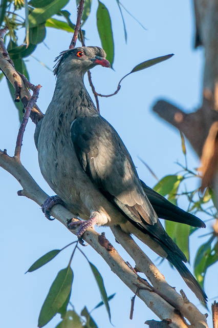 Taverners Hill Station is high above the ground level – and the height provides a good view into the canopy of nearby trees. A out of birds are recorded here and not at other places along the Greenway. This morning was no exception. The highlight on the morning was a Topknot Pigeon.