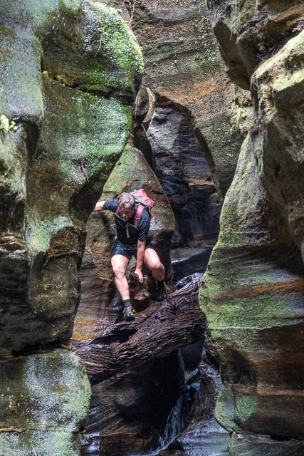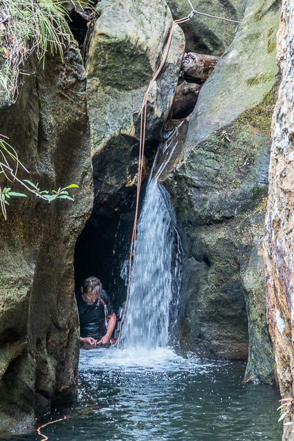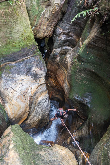 We soon arrived at the lower constriction. This begins with a nice abseil into a slot.